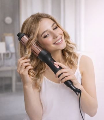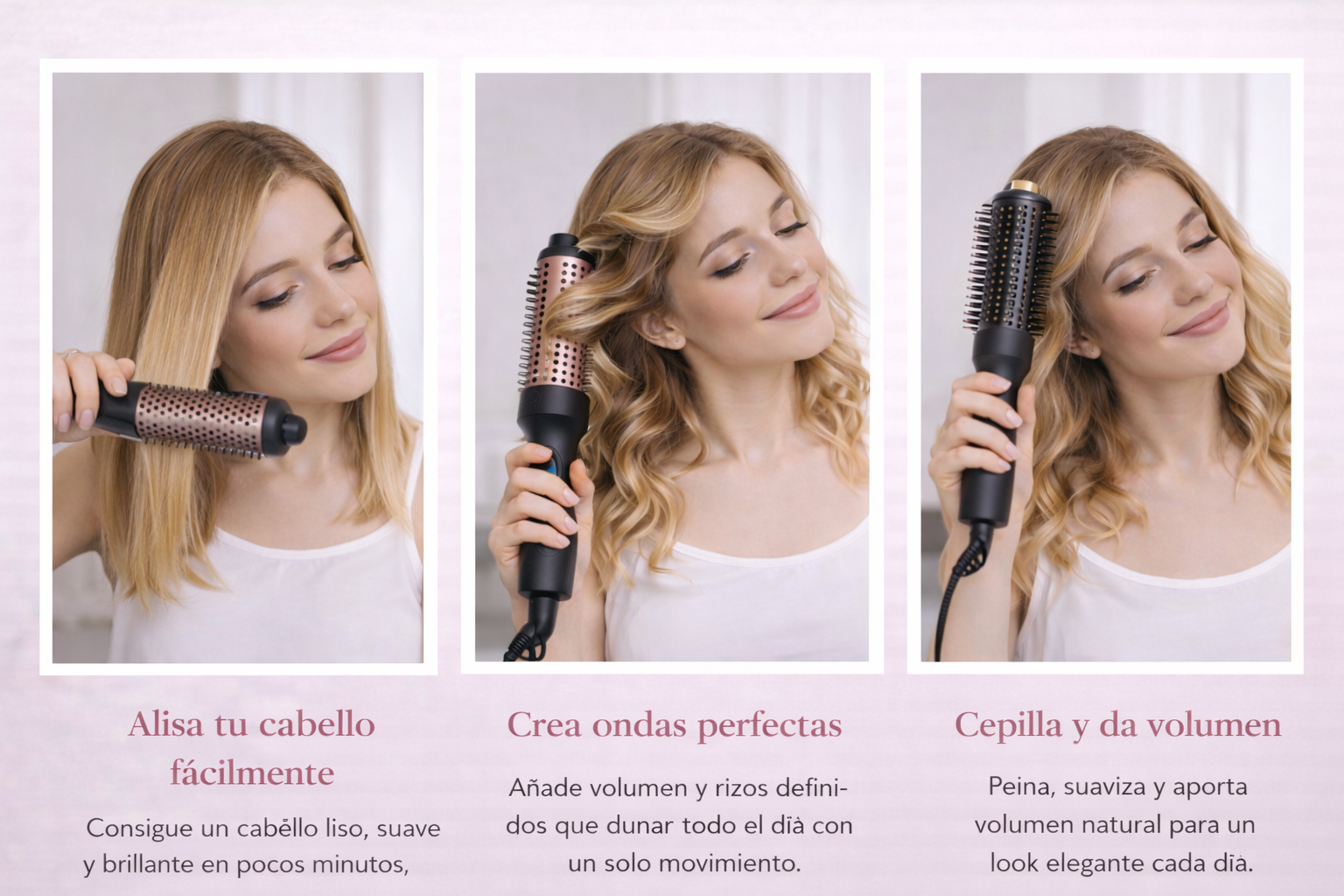Alisa, riza y da volumen con un solo cepillo práctico, ahorrando tiempo y espacio en tu rutina diaria.